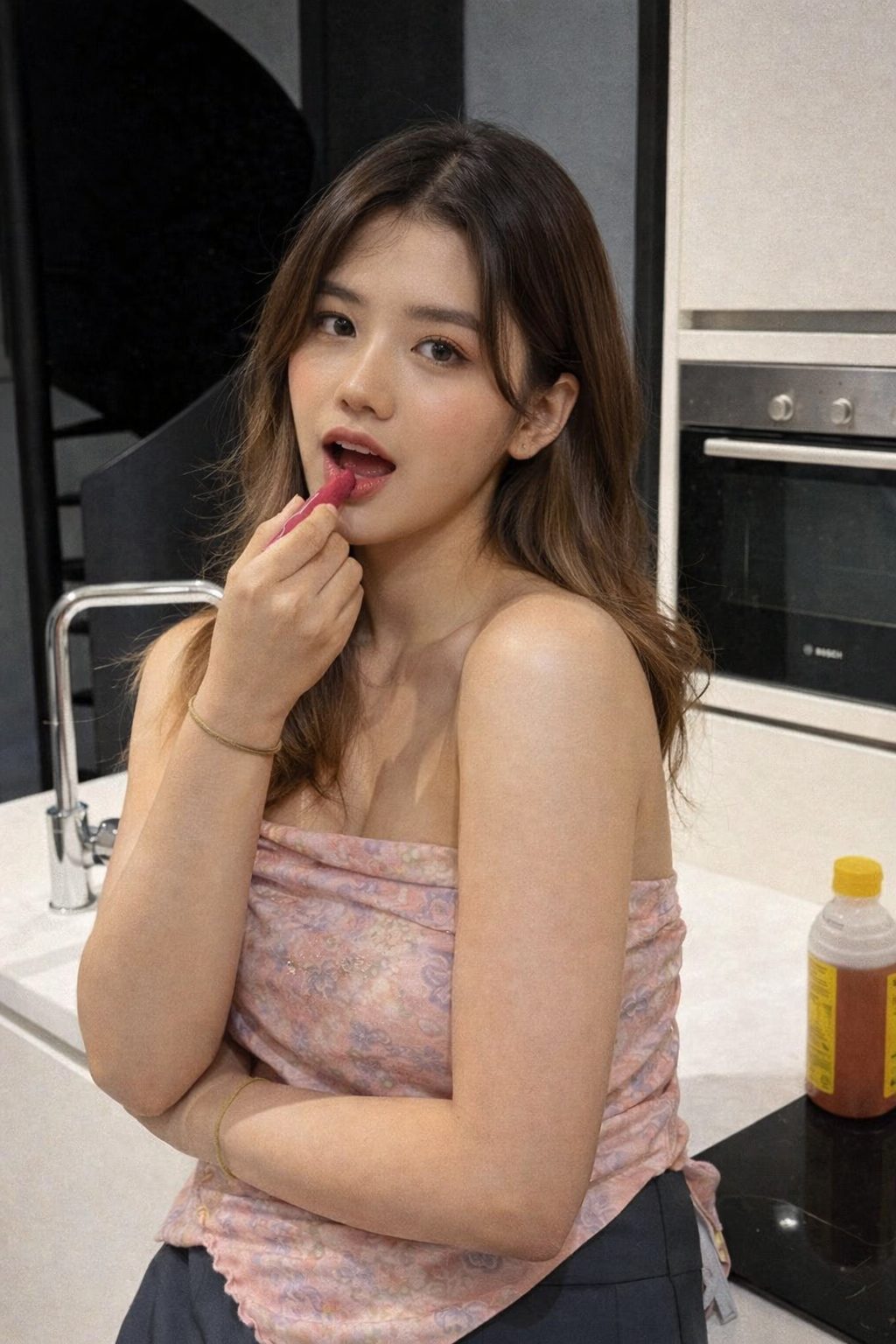Her delicate features, glowing complexion, and beautifully balanced figure give her a refined yet feminine look. Whether dressed in a sleek black evening dress or something more relaxed and chic, Mia carries herself with effortless grace.